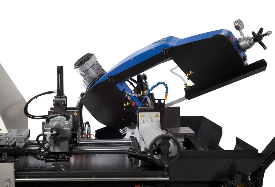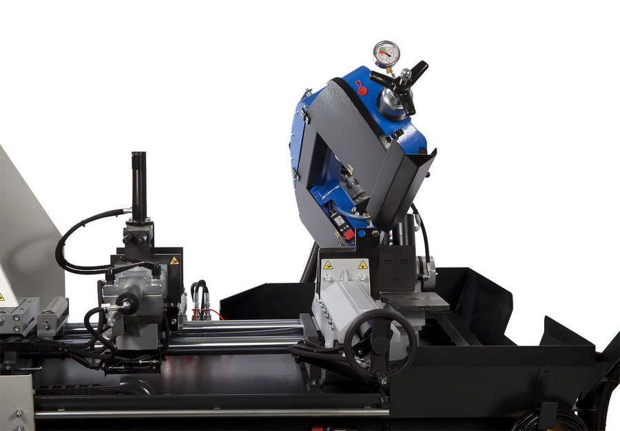 gietijzeren zaagarm op lineaire geleidingen en de servogestuurde aanvoer leveren stijfheid, nauwkeurigheid en
