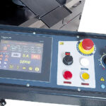 - Standaard: frequentieomvormer (15–90 m/min), spoelspuitpistool, drukregeling zaaginvoer, grote spanenbak.