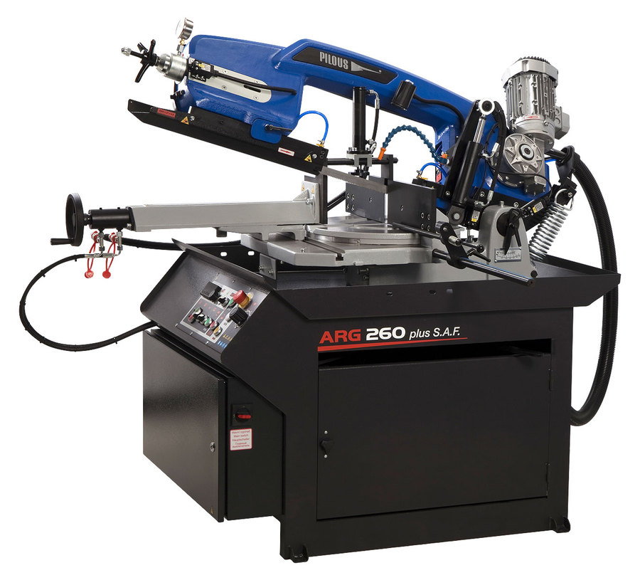 De ARG 260 PLUS S.A.F. combineert een stijve gietijzeren arm met dubbelzijdig verstek, variabele bandsnelheid