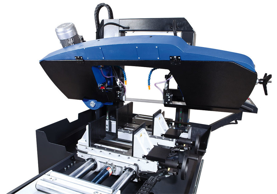 Hydraulisch aangestuurde, eenzijdige automatische regeling van de zaagbandinvoer in de snede, afhankelijk van de weerstand van het te zagen materiaal. Verkort de zaagtijd en de levensduur van de zaagband aanzienlijk.