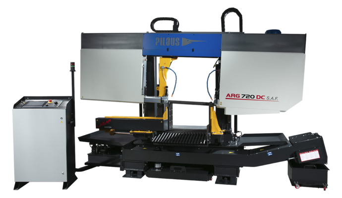 De ARG 720 DC S.A.F. is een robuuste dubbelkoloms semi-automatische lintzaag voor continu industrieel zaagwerk
