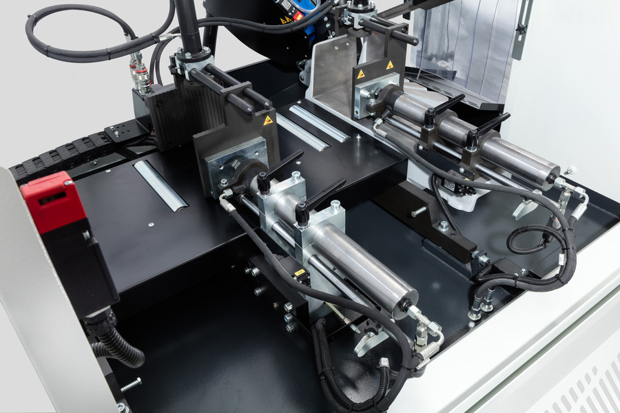 - Robuuste toevoerklem op hardverchroomde staven; lineair meetsysteem voor hoge nauwkeurigheid.